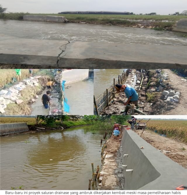 KARAWANG, NarasiKita.ID — Dugaan regulasi pengadaan barang dan jasa pemerintah tidak berlaku di lingkungan Dinas Pekerjaan Umum dan Penataan Ruang (DPUPR) Kabupaten Karawang. Pasalnya, proyek pembangunan saluran drainase di Desa Ciptamarga, Kecamatan Jayakerta, yang berbatasan dengan Desa Dewisari, Kecamatan Rengasdengklok, mengalami kerusakan parah meski baru selesai beberapa bulan lalu. Senin (23/06/2025).