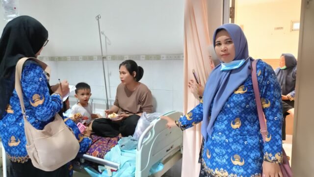 Memasuki siang hari, Hj Sri Redjeki melanjutkan agenda dengan menjenguk sejumlah anak yang tengah menjalani perawatan di klinik. Kehadirannya menjadi bentuk perhatian langsung pemerintah kecamatan terhadap kondisi korban, terutama balita dan pelajar yang terdampak.