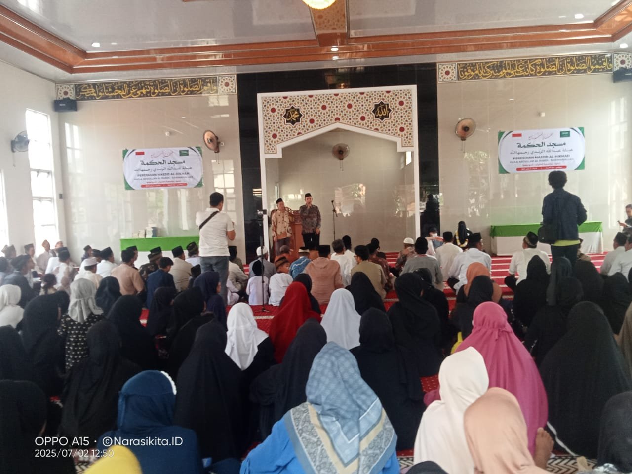 BEKASI, NarasiKita.ID — Masjid Al’Hikmah yang berlokasi di Kampung Garon Barat RT 003 RW 002, Desa Setialaksana, Kecamatan Cabangbungin, Kabupaten Bekasi, diresmikan pada Rabu (02/07/2025). Uniknya, peresmian ini langsung dilakukan oleh donatur asal Arab Saudi, Dr. Yusuf Al’Basam beserta istrinya.