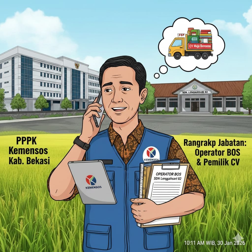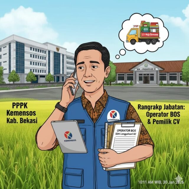 BEKASI, NarasiKita.ID – Dugaan rangkap jabatan yang melibatkan oknum Pegawai Pemerintah dengan Perjanjian Kerja (PPPK) berinisial IML kembali menjadi sorotan publik. IML diketahui bertugas sebagai pendamping Program Keluarga Harapan (PKH) di bawah Kementerian Sosial, namun diduga merangkap sebagai operator Bantuan Operasional Sekolah (BOS) sekaligus pemilik atau pihak yang terafiliasi dengan CV penyedia barang dan jasa di SDN Lenggahsari 02, Kecamatan Cabangbungin, Kabupaten Bekasi.