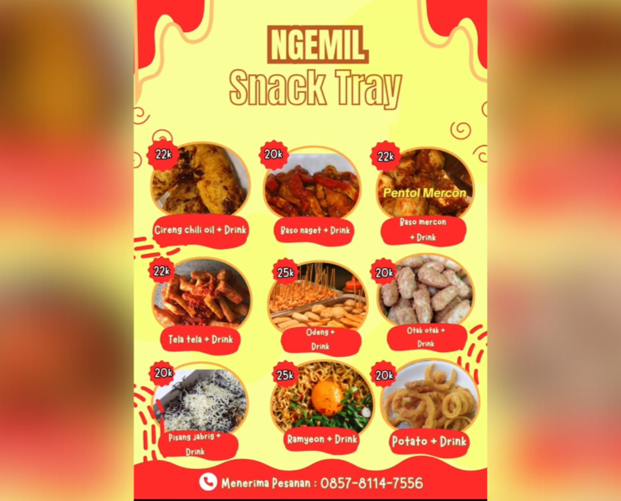 “Ngemil Snack Tray” cocok banget buat nongkrong bareng teman, keluarga, atau sekadar melepas penat di sore hari. Yuk, buruan cobain dan rasain sensasi ngemil kekinian yang sedang hits di Rengasdengklok!