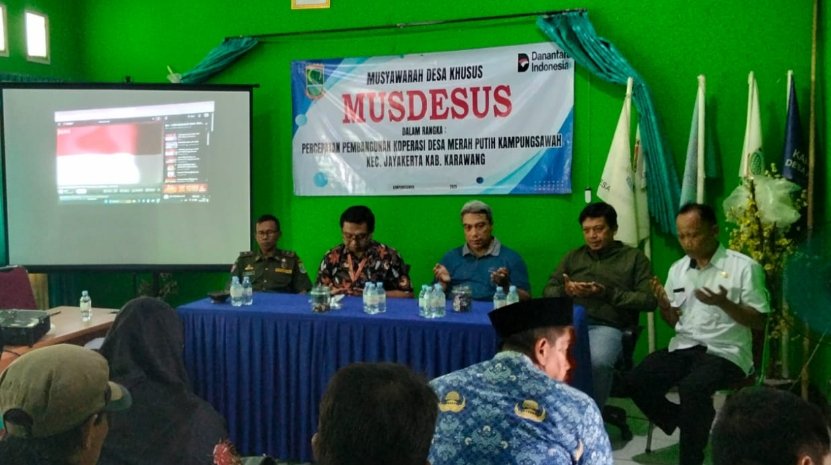 KARAWANG, NarasiKita.ID – Pemerintah Desa Kampungsawah, Kecamatan Jayakerta, Kabupaten Karawang, menegaskan komitmennya dalam memperkuat ekonomi masyarakat melalui pendirian Koperasi Merah Putih Desa Kampungsawah. Langkah tersebut dimulai dengan pelaksanaan Musyawarah Desa Khusus (Musdesus) yang digelar di Aula Desa Kampungsawah, Rabu (17/12/2025), sebagai pijakan awal dalam proses pembangunan koperasi.