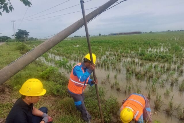 KARAWANG, NarasiKita.ID – Kepala Cabang PLN Rayon Rengasdengklok, Lukman Ismail, merespons cepat laporan warga terkait tiang listrik yang kembali roboh di ruas jalan penghubung Desa Ciptamarga–Medangasem, tepatnya di sekitar jalur Pertamina. Tiang tersebut tampak miring dan nyaris menyentuh tanah, menimbulkan kekhawatiran warga akan potensi bahaya bagi pengguna jalan maupun lahan pertanian di sekitarnya.