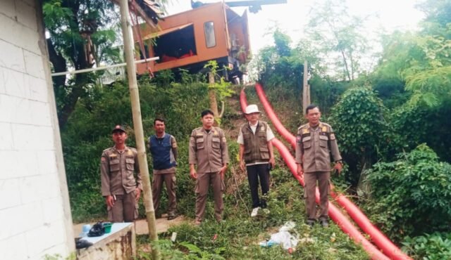 Kepala Satpol PP Kecamatan Cabangbungin, Daos Hidayat, S.IP, beserta jajaran turut melakukan monitoring kegiatan penyedotan di lokasi terdampak.