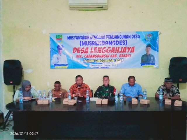 BEKASI, NarasiKita.ID – Pemerintah Desa Lenggahjaya, Kecamatan Cabangbungin, Kabupaten Bekasi, menggelar Musyawarah Perencanaan Pembangunan Desa (Musrenbangdes) Tahun Anggaran 2027 di Aula Kantor Desa Lenggahjaya, Kamis (15/1/2026). Agenda ini menjadi ruang strategis bagi warga untuk menyampaikan aspirasi pembangunan sesuai kebutuhan riil masyarakat desa.