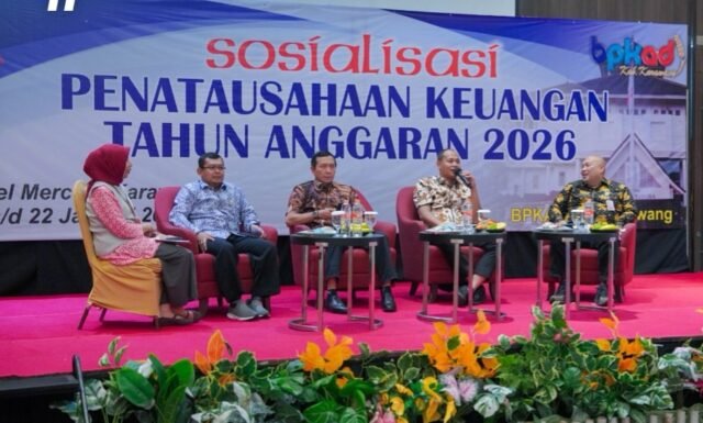 KARAWANG, NarasiKita.ID – Pemerintah Kabupaten Karawang melalui Badan Pengelolaan Keuangan dan Aset Daerah (BPKAD) menggelar Sosialisasi Penatausahaan Keuangan Daerah Tahun Anggaran 2026 di Ballroom Hotel Mercure Karawang, Kamis (22/1/2026). Kegiatan berlangsung dua hari secara hybrid, luring dan daring melalui Zoom Meeting. Peserta terdiri dari Asisten Daerah, Kepala OPD, Camat, Bendahara Pengeluaran, serta Kepala Pengadaan Barang dan Jasa.