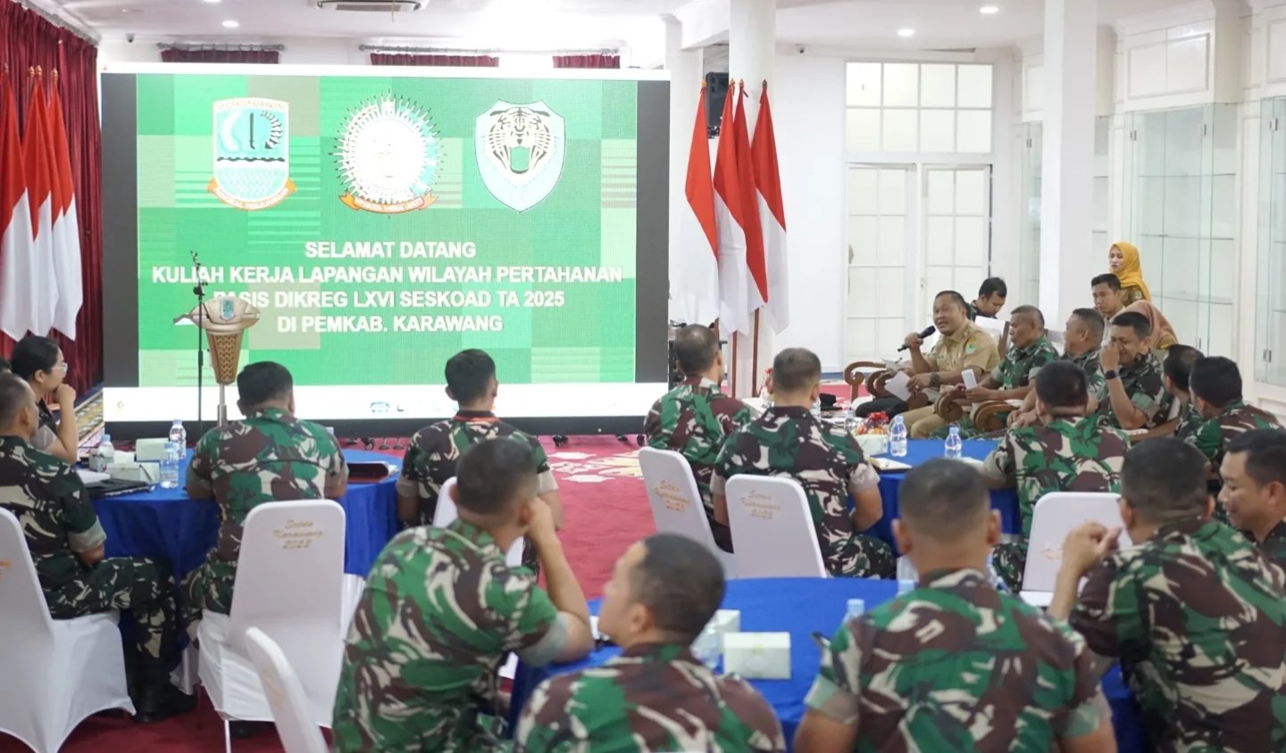 Hal itu disampaikan Wabup Maslani saat memberikan sambutan pada Entry Briefing KKL Wilhan Pasis Dikreg LXVI Seskoad Tahun 2025, yang digelar di Gallery Nyi Pager Asih, Karawang, Senin (06/10/2025).