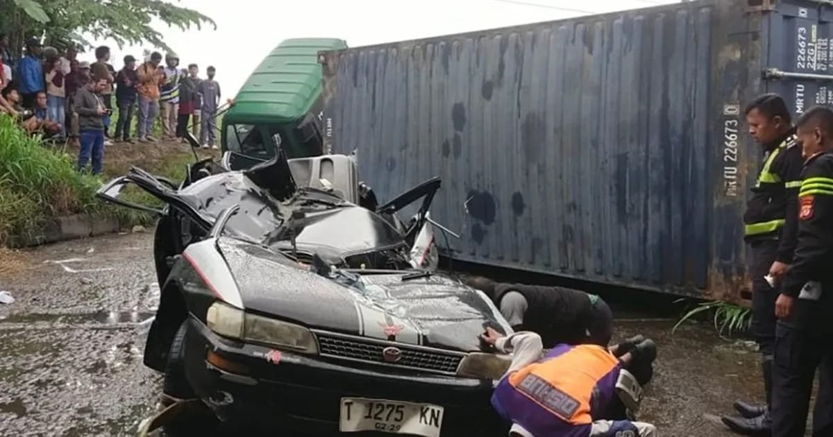 Sebuah truk kontainer bermuatan 32 ton minyak goreng terguling setelah kehilangan kendali di ruas jalan menurun dan sempit. Nahas, truk tersebut menimpa mobil Toyota Corolla yang datang dari arah berlawanan. Tiga orang sekeluarga ayah, ibu, dan anak tewas di tempat. Tiga korban lainnya luka-luka.