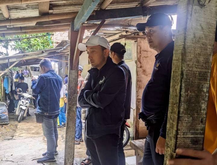 KARAWANG, NarasiKita.ID – Wakil Ketua DPRD Kabupaten Karawang dari Fraksi Partai NasDem, Dian Fahrud Jaman, meninjau rumah warga yang mengalami erosi akibat banjir Sungai Citarum di Jalan Citarum, Krajan Adiarsa Barat, RT 04/11, Kelurahan Adiarsa Barat, Kabupaten Karawang, Jawa Barat, Selasa (20/1) siang.